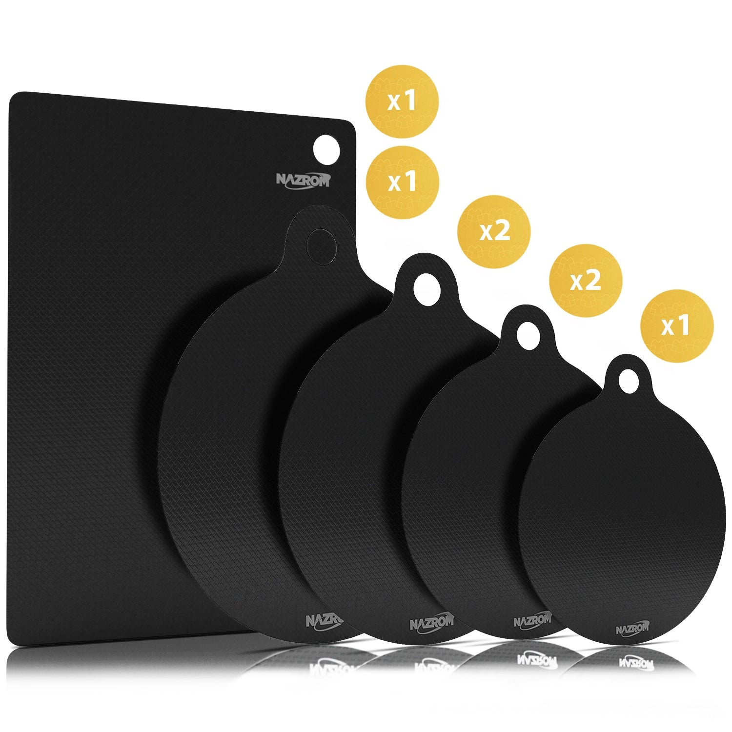 Deze duurzame siliconen glasvezel inductie beschermer omvat een unieke set van maar slechts 5 verschillende formaten , 7 stuks en een hittebestendigheid dat compatibel is met elke soort kookplaat. In tegenstelling tot andere merken ben je met de NAZROM set altijd verzekerd van passende en krachtige kookplaat beschermer voor al je kookzones. Bovendien zijn ze vanwege het stijlvolle design ook nog eens een sfeervolle aanwinst voor de uitstraling van je keuken. Het biedt niet alleen bescherming aan je kookplaat, maar is ook zeker een mooie finishing touch en toevoeging voor in de keuken.