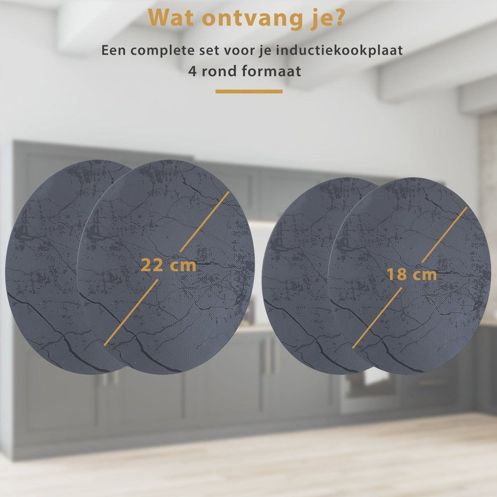 Inductie Beschermer Set Elegant Grijs – 4 Stuks | 2 Maten – Anti-Kras & Anti-Slip