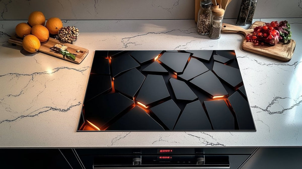 Inductie Beschermer - Afdekmat - Gebroken Zwarte Tegels