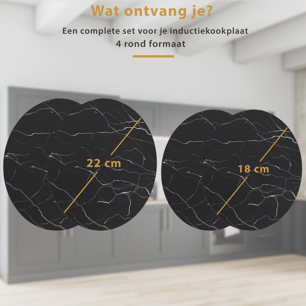 Inductie Beschermer Set Marmer – 4 Stuks | 2 Maten – Anti-Kras & Anti-Slip