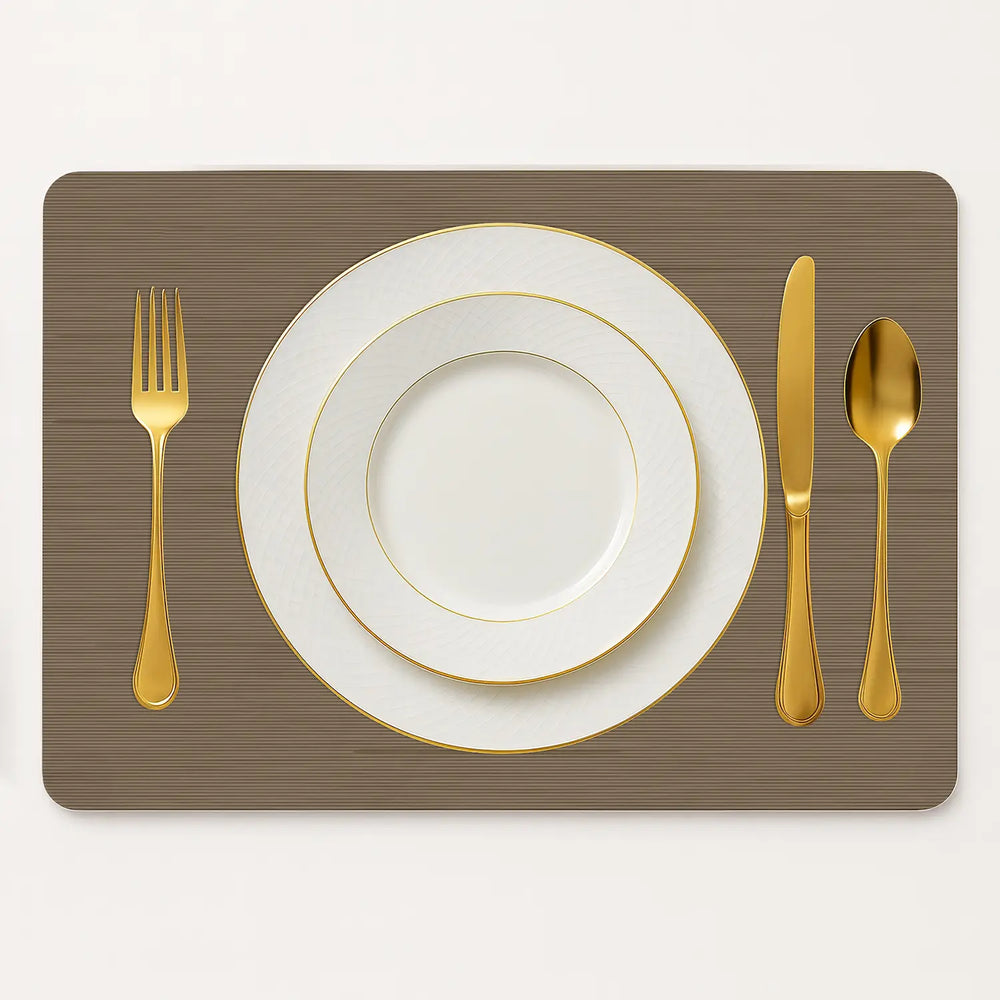 Luxe Vinyl Placemats Van Kunststof – Taupe Ribbelstructuur, Rond & Rechthoek
