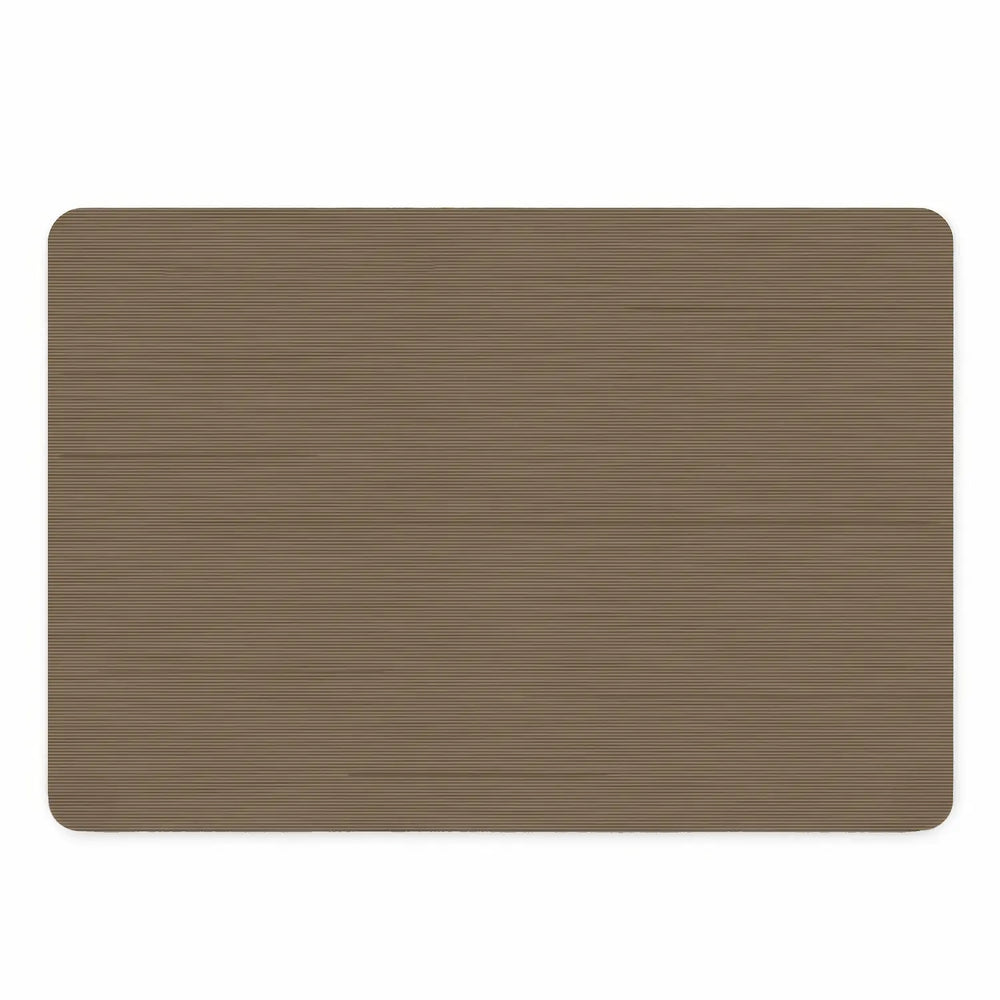 Deze luxe vinyl placemats van kunststof hebben een verfijnde taupe ribbelstructuur die zorgt voor een rustige en elegante tafelsetting. De warme greige tint combineert moeiteloos met zowel moderne als natuurlijke interieurs en geeft je tafel een verzorgde, tijdloze uitstraling.