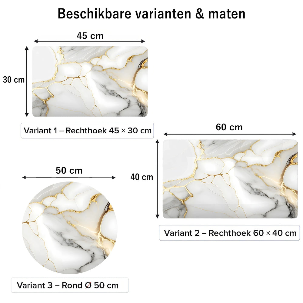 • Formaten: 45x30 cm, 60x40 cm, rond Ø 50 cm