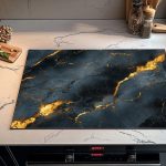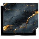 Inductie Beschermer – Afdekmat – Luxe Donkergrijs Marmer met Gouden lijnen