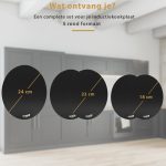 - Set bestaat uit diverse ronde inductie matten voor grote en kleine kookzones