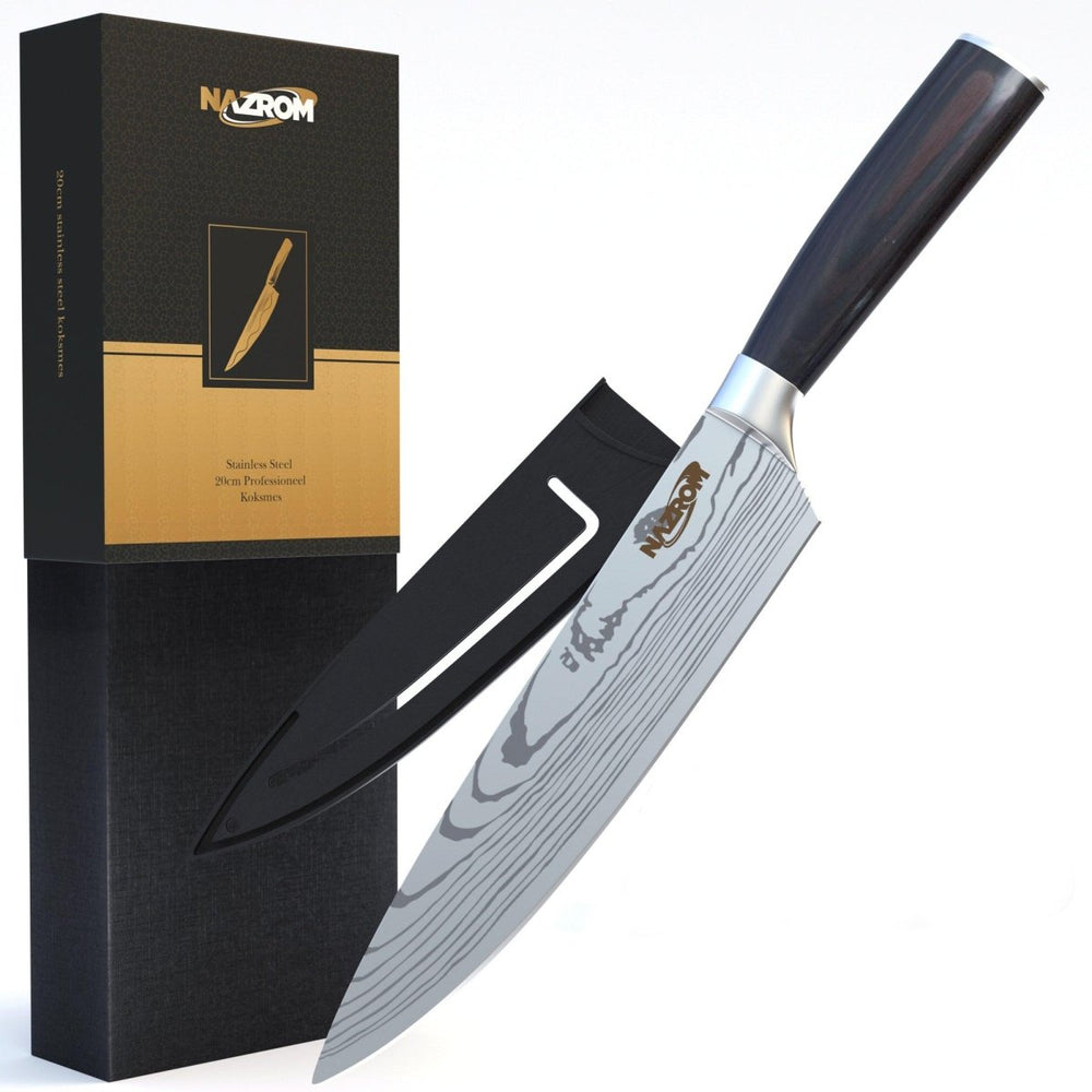 NAZROM® Professioneel Koksmes 20 CM, Inclusief Mesbeschermer, Duurzaam En Vlijmscherp
